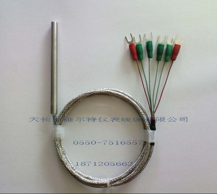 简易热电偶 简易直插式就是将感温元件套上保护管后直接引出导线。用户可根据使用使用的不同或测量空间的大小选择不同的分度号、套管尺寸和导线材料,温度200℃,温度300℃,温度400℃以下根据不同温场选型,订货时请注明。