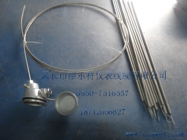 增强管式铠装热电偶、热电阻 在一些特殊场所,如石油、冶金、电站、流体测量等,需要温度计在高温下具有耐热、物理与化学性能稳定和抗热震、抗流体冲刷等性能,因而出现了带增强金属保护管的铠装热电偶和热电阻。特点是机械强度高、抗渣性强、耐高温、耐压、抗化学腐蚀和抗热震性好。增强管式铠装热电偶、热电阻常用的保护管型式如下:● 固定法兰型保护管固定法兰型保护管外形及标准尺寸